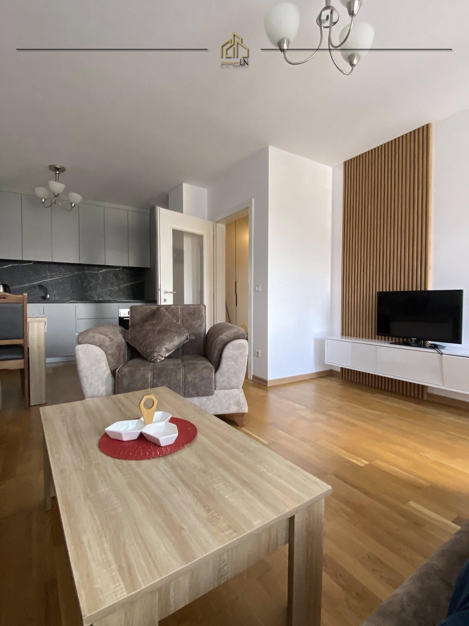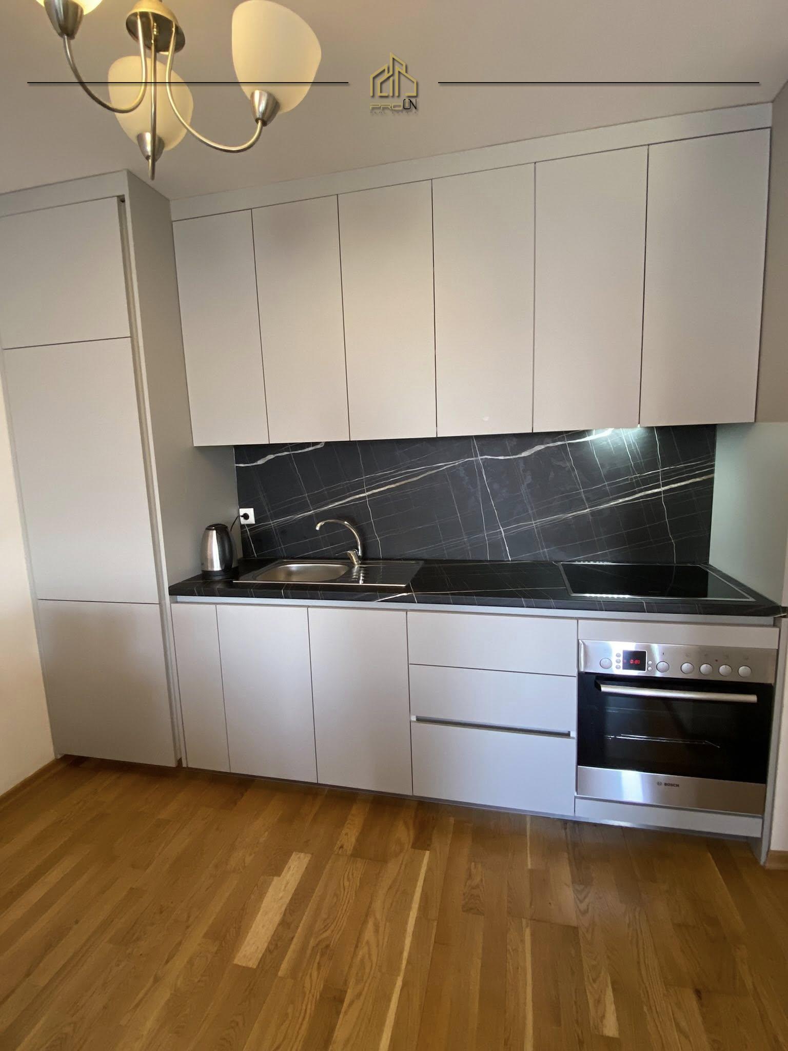 Renditja: sallon-kuzhinë, dhomë gjumi, koridor, banjo dhe ballkon.