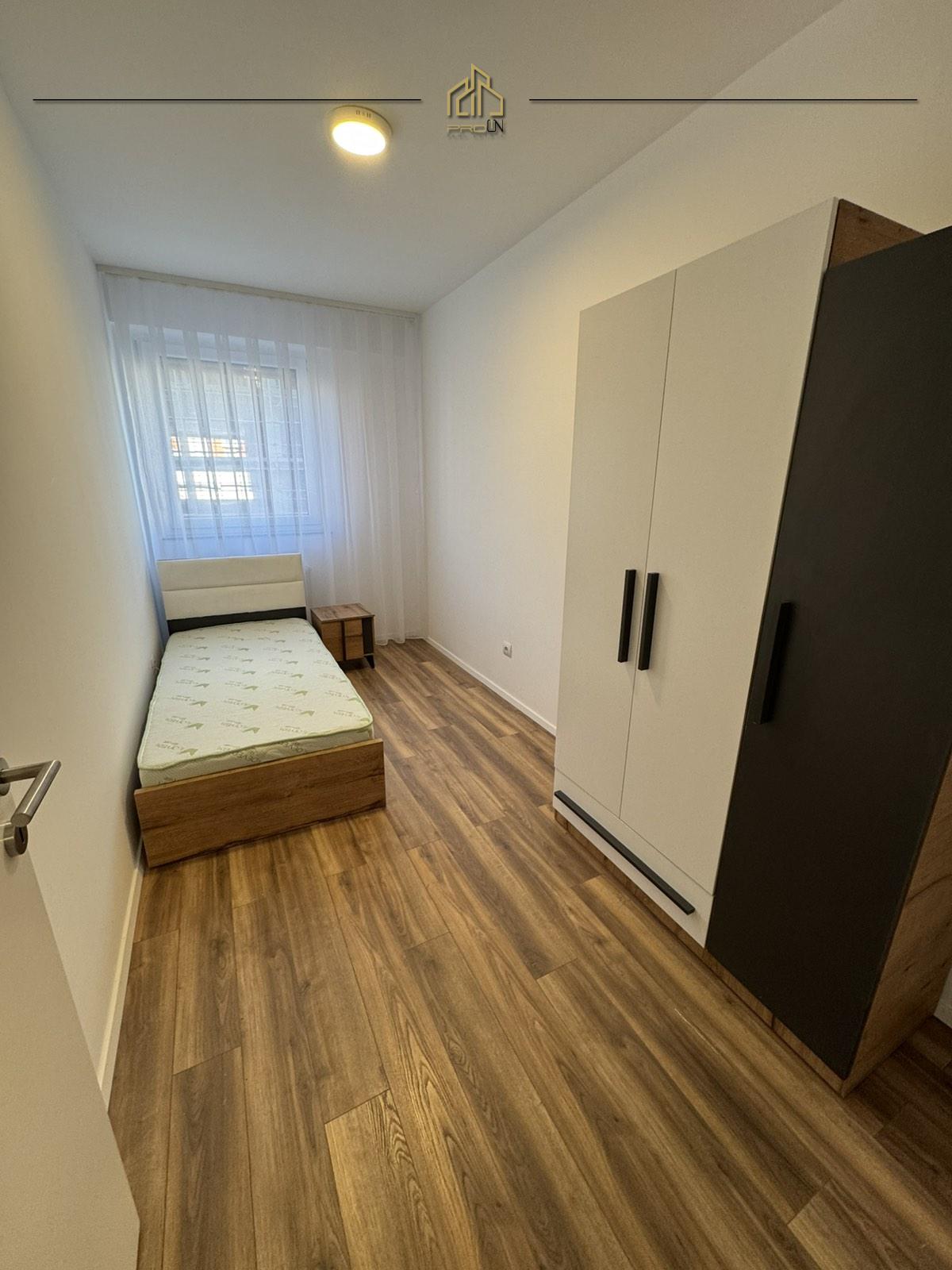 Banesa gjendet në lagjen Kalabria (Emshir) – Kompleksi Blerti, ka sipërfaqe 91m² kati i 2-të, me ashensor funksional.