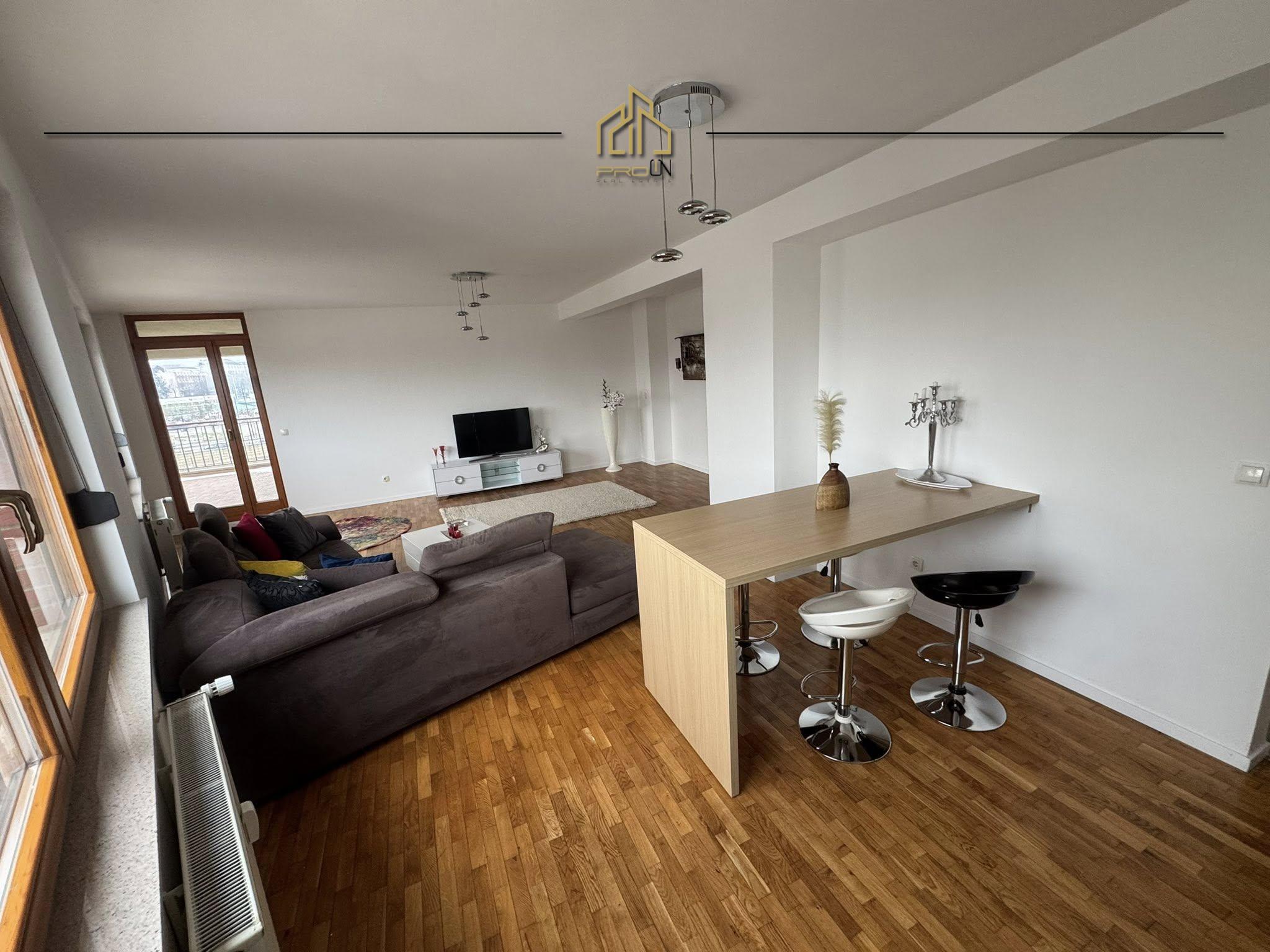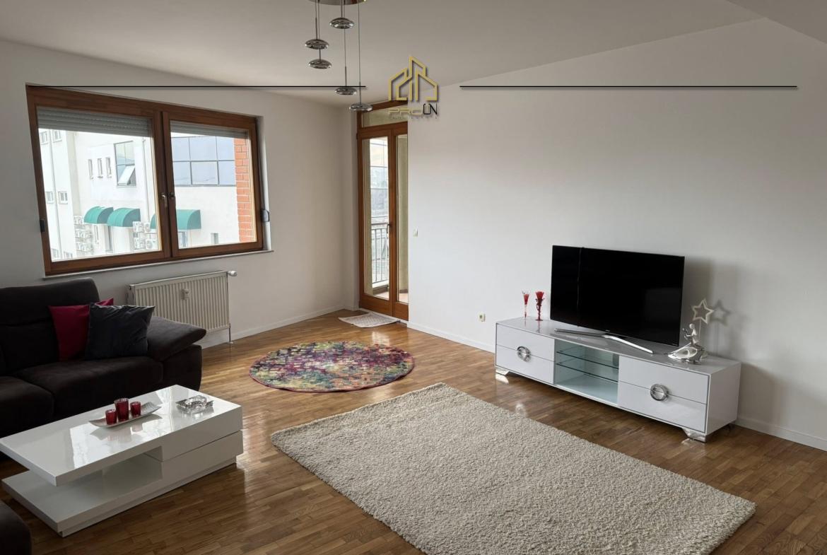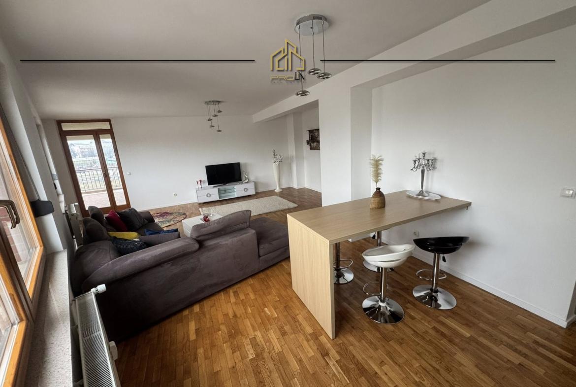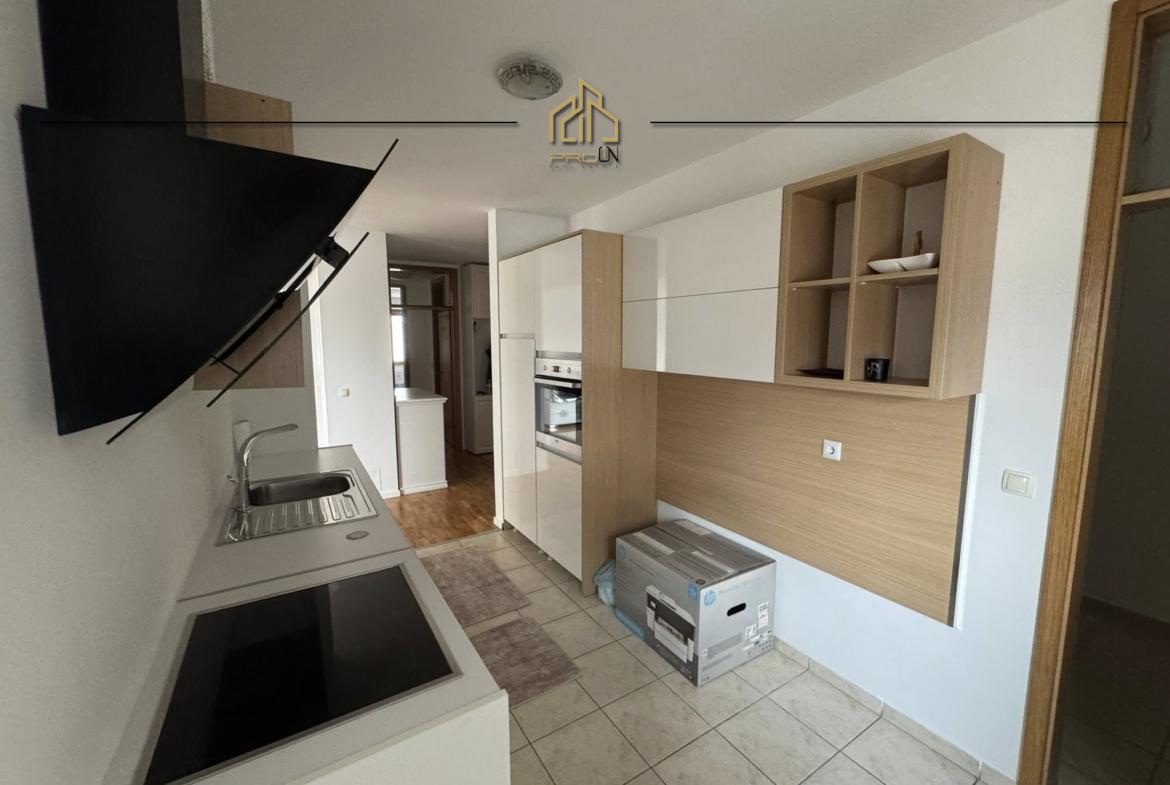 Banesa gjendet në lagjen Kalabria (Emshir) – mbi Meridian, ka sipërfaqe 143m² kati i 3-të, me ashensor funksional.