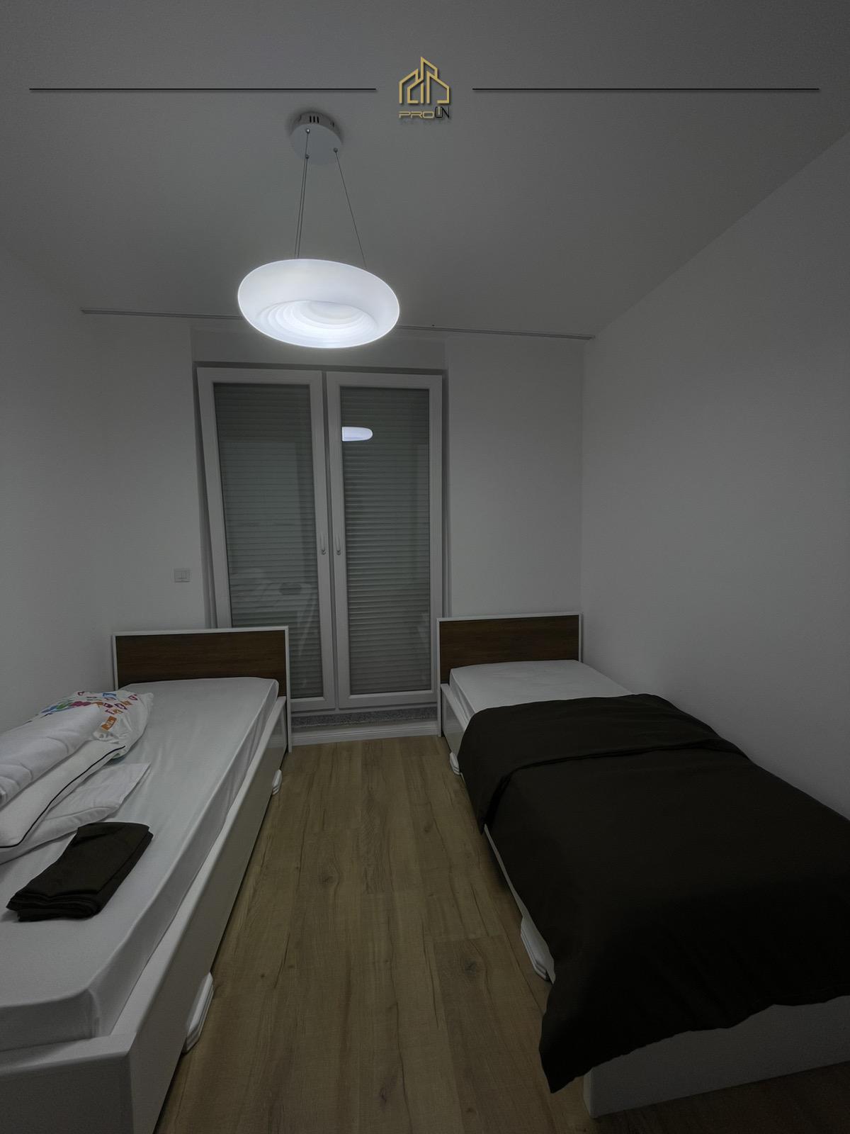 Renditja: sallon-kuzhinë, dy dhoma gjumi, koridor, dy banjo dhe ballkon.