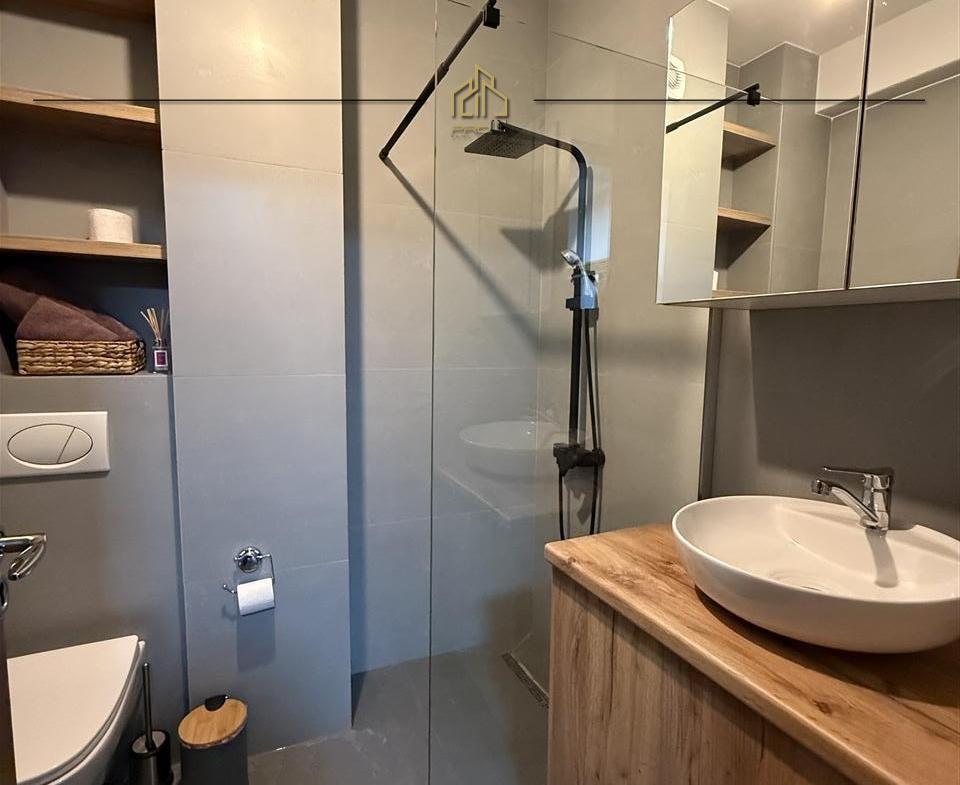 Është e mobiluar me mobilje moderne dhe e paisur me të gjitha gjërat e nevojshme për banim, interier modern dhe atraktiv.