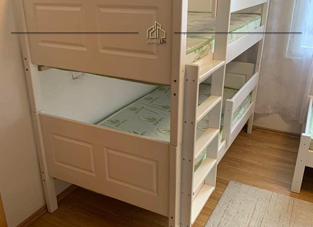 Renditja: sallon-kuzhinë, dy dhoma gjumi, koridor, banjo dhe ballkon.