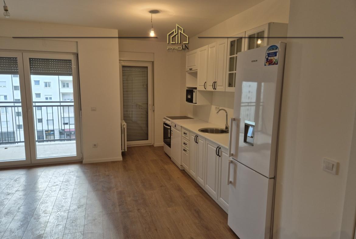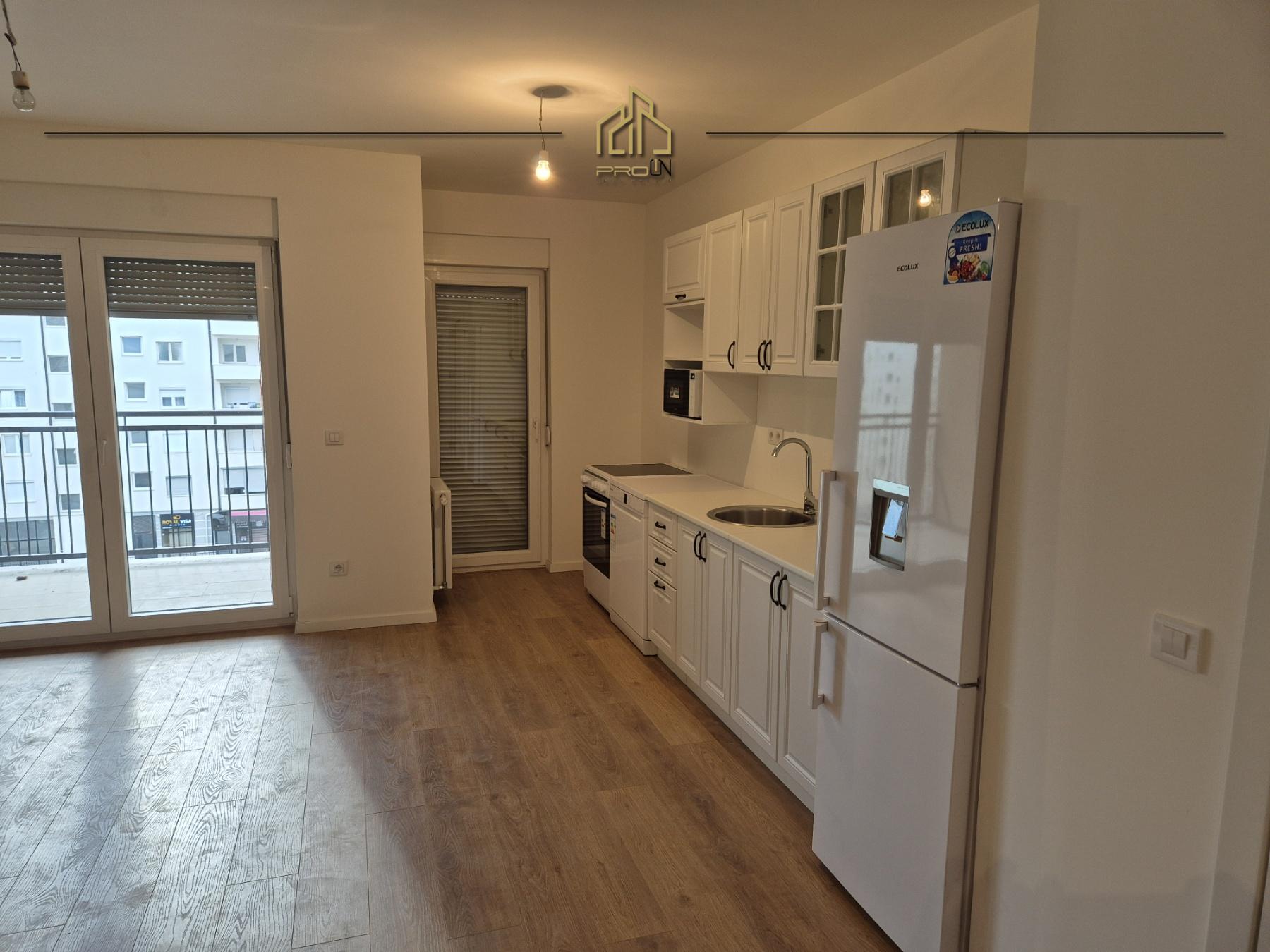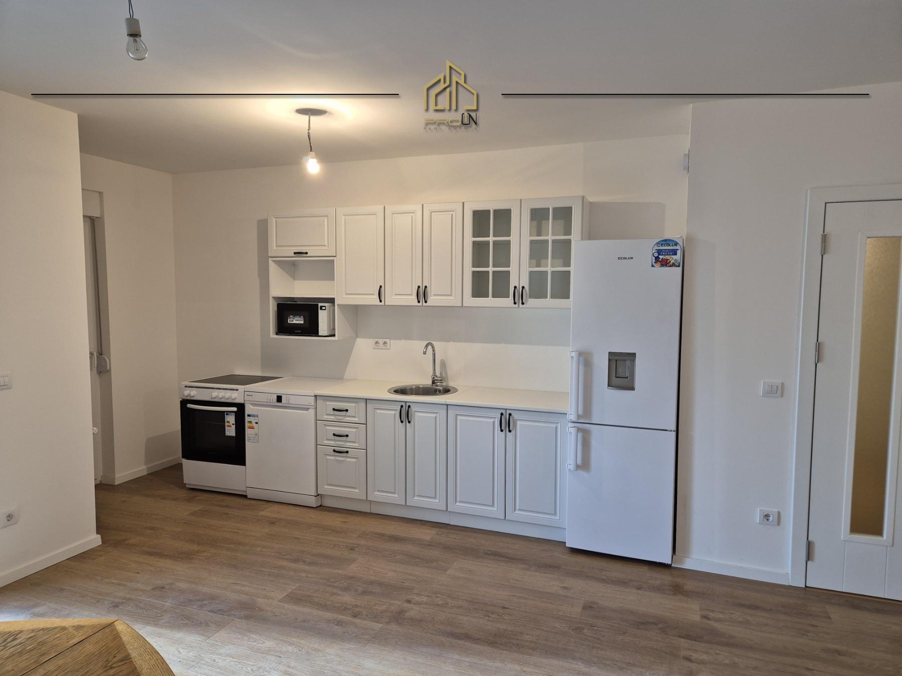 Është e pa mobiluar, por ka vetëm kuzhinën e re të montuar me të gjitha pajisjet e saj përcjellëse gjithashtu të reja.