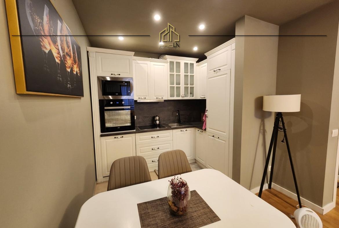 Është e mobiluar dhe organizuar me paisjet e nevojshme për banim, ngrohje qëndrore me energji elektrike.