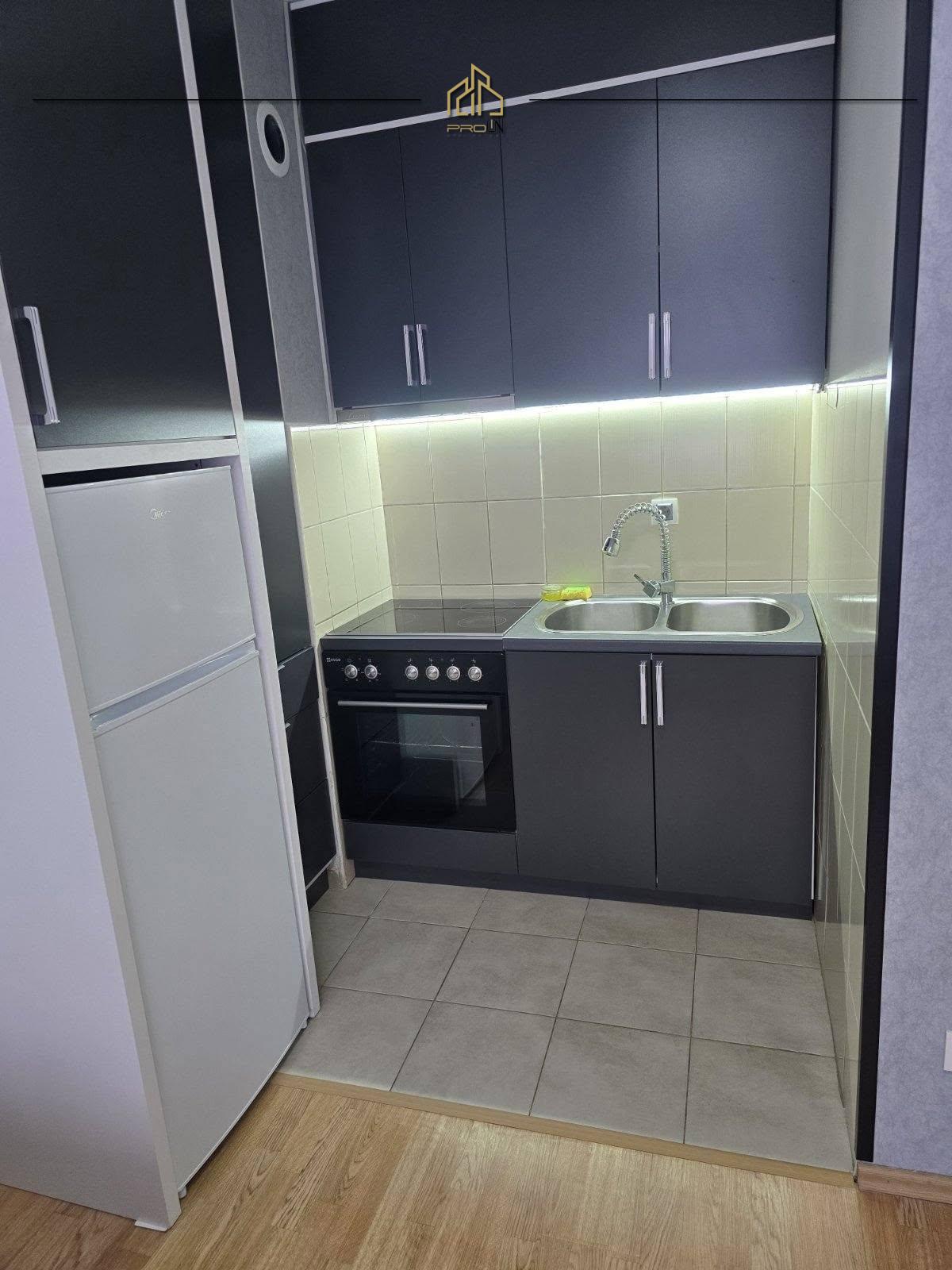 Renditja: sallon-kuzhinë, dhomë gjumi, koridor, banjo dhe ballkon.