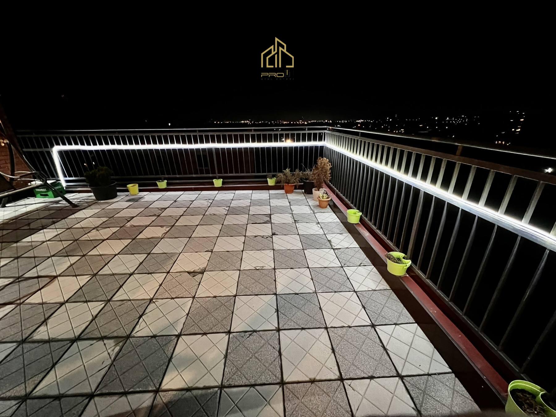 Penthouse gjendet në lagjen Kalabria (Emshir) – mbi Tregu Group, ka sipërfaqe banimi 55m² dhe terrasë 55m².