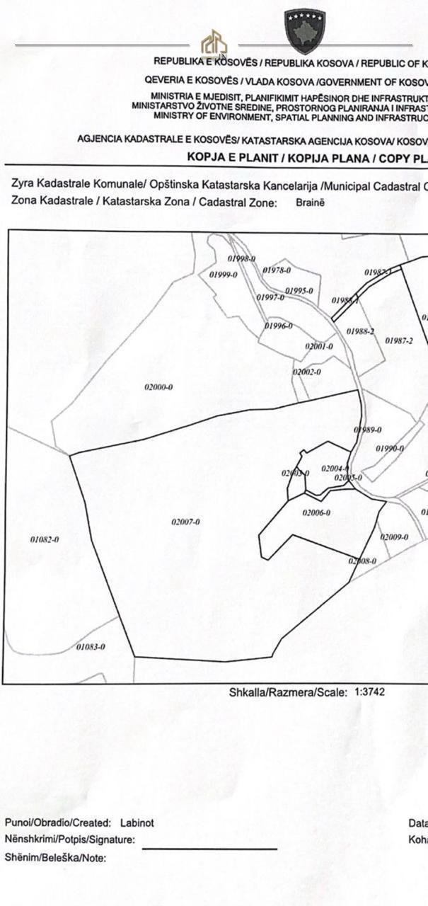 Ofrohet për shitje parcelë me sipërfaqe 7 hektarë në një vend të vetëm, e vendosur në një lokacion atraktiv në Brainë, me kufizim direkt me fshatrat Nishevc dhe Keçekollë.
