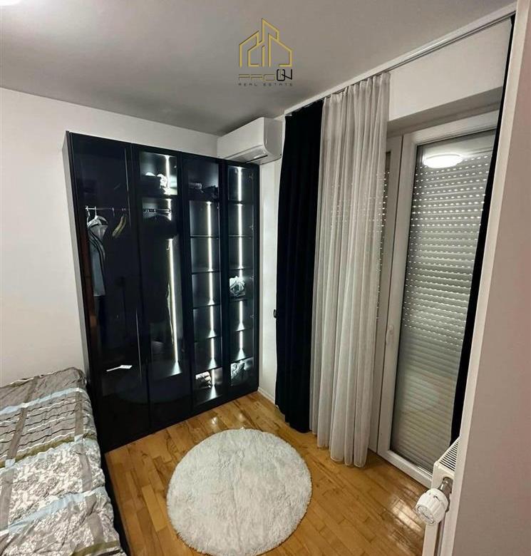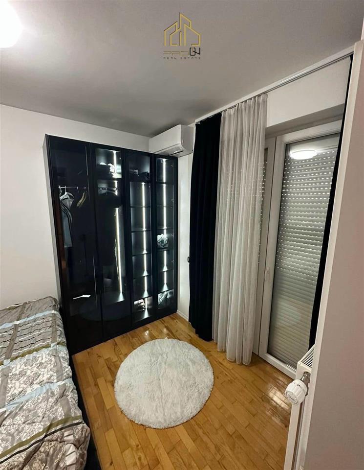 Banesa gjendet në lagjen Kalabria (Emshir) – Kompleksi Riera, ka sipërfaqe 65m² kati i 9-të, me ashensor funksional.
