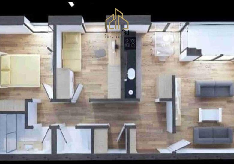 Renditja: sallon, kuzhinë me tryezari, dy dhoma gjumi, depo, dy banjo dhe ballkon.