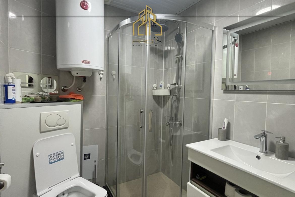 Është e mobiluar dhe organizuar me paisjet e nevojshme për banim, me klimë dhe ngrohje qëndrore Termokos.
