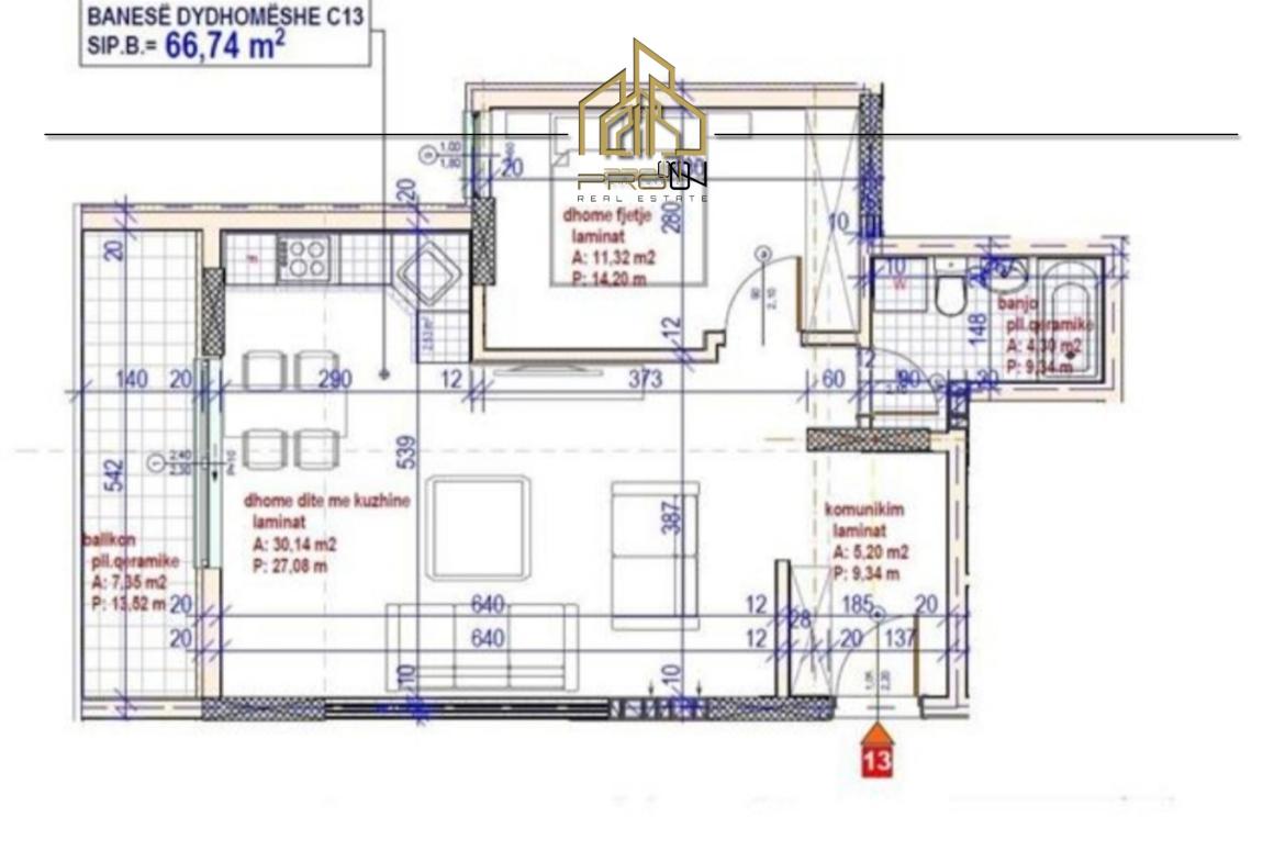 Madhësia e pronës 66.74 m²