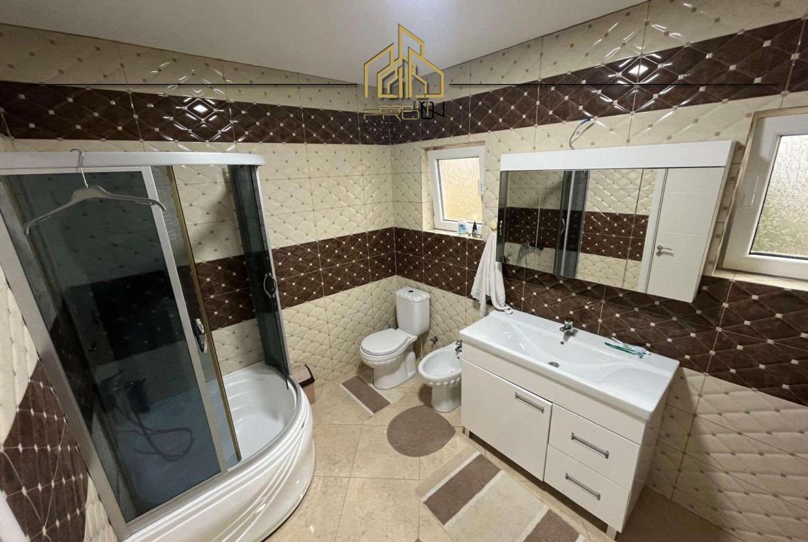 Shtëpia ka oborr dhe hapësirë për 5 parkingje, gjelbërim, ujë i pijshëm 24h, nxemje qëndore dhe kaminë.